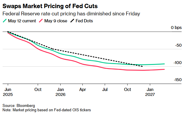 要知道,就在上月,利率市场还一度完全定价了年内四次降息的预期——当时市场普遍预期美联储将在6月重启宽松周期,因担忧贸易战可能冲垮美国经济。