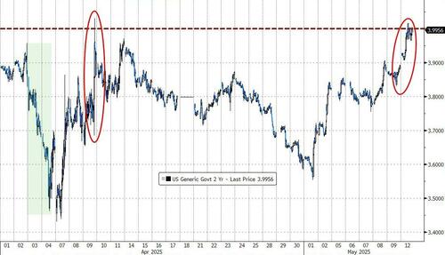 随着市场削减了对美联储年内降息的预期,对货币政策尤为敏感的两年期美债收益率周一一度最高攀升了12个基点,重新突破了4%大关。