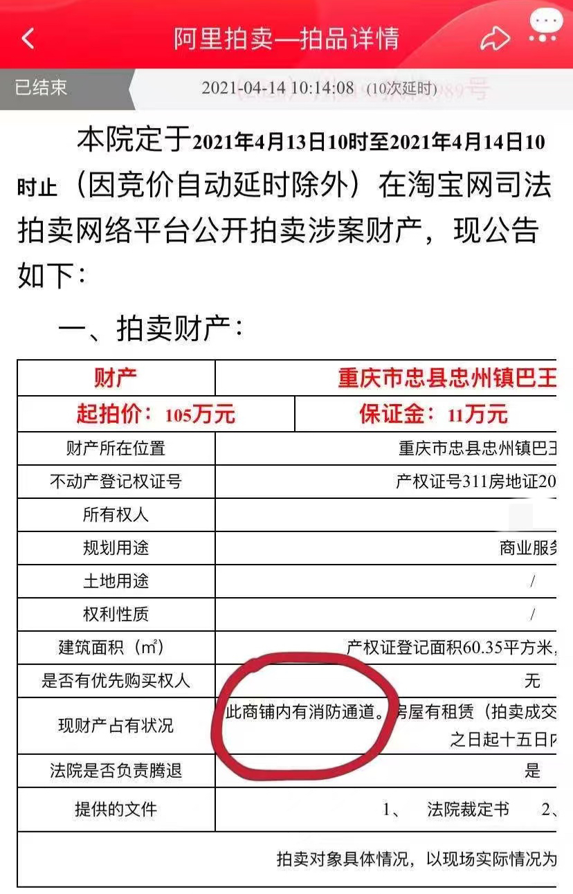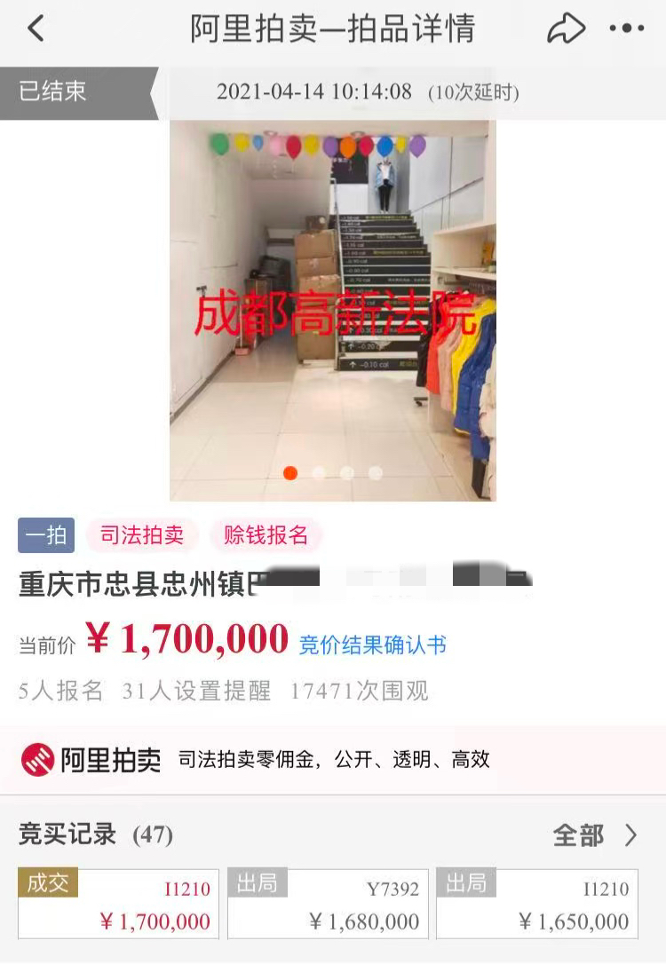 2021年7月,周先生通过法院拍卖的方式,以425万元的价格购得重庆忠县忠州街道一处临街二层商业建筑。