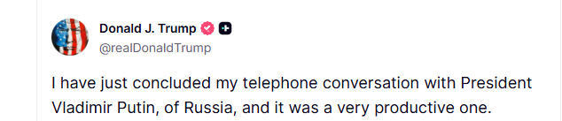 特朗普表示,他仍然致力于帮助解决乌克兰冲突,双方在通话中花费大量时间讨论乌克兰冲突结束后俄美之间的贸易问题。