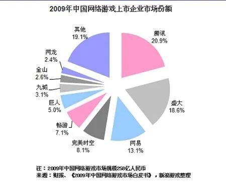 2009 年中国游戏市场已经彻底成为网络游戏的代名词,一代神作《热血江湖》经过 4 年运营热度消去,取而代之的是多款国产自研、代理网游全面爆发,《地下城与勇士》、《传奇》、《QQ 炫舞》、《梦幻西游》等数十款大作共同发力,将当年中国网游市场规模推至 258 亿,同比增幅超过 40%。网游成为名副其实的无限金矿。
