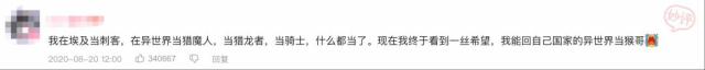 "我在埃及当刺客,在异世界当猎魔人,当猎龙者,当骑士,也已经回到自己国家的异世界当猴哥。现在我终于看到一丝希望,就是找回那个曾经梦想仗剑走天涯的自己。"