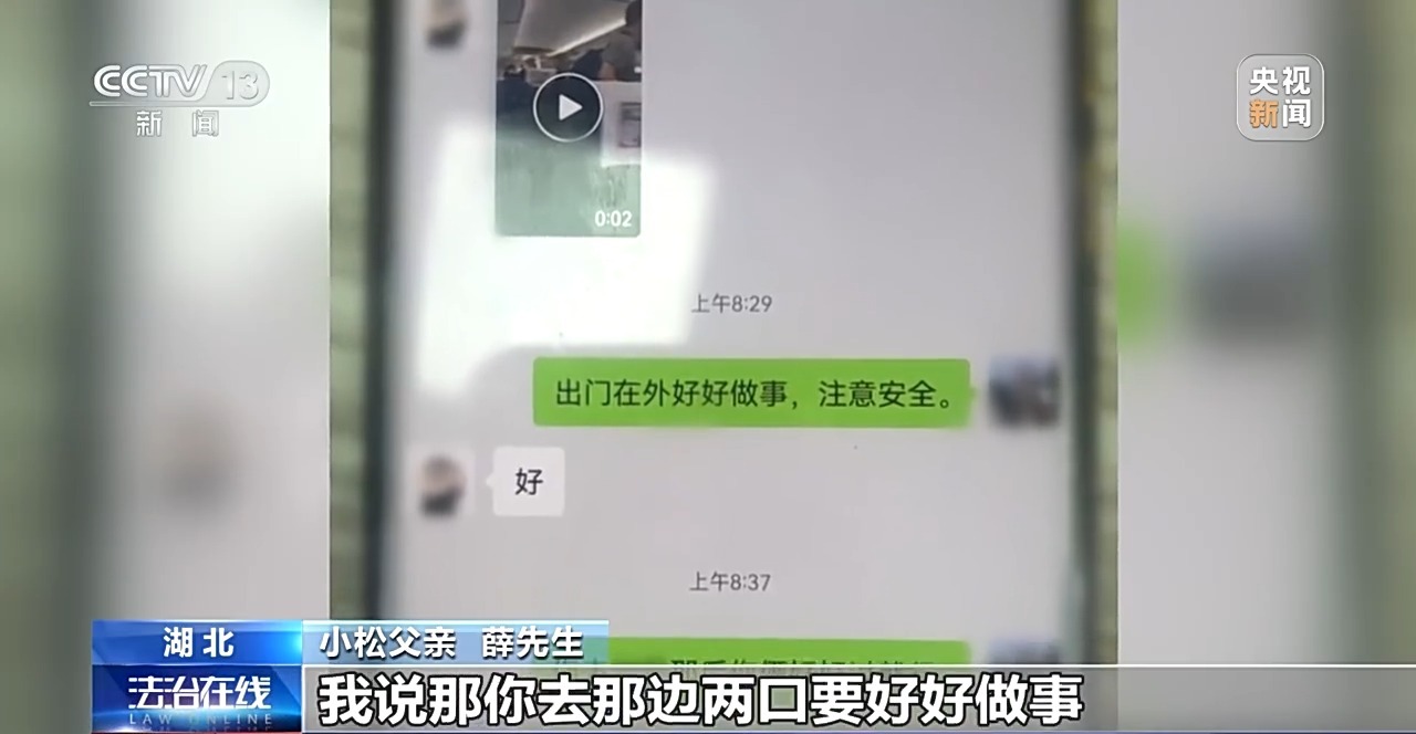 小松父亲 薛先生:因为他前一天回去拿衣服的时候,收拾东西的时候,他说去我儿媳妇那里,就是去他老婆那里,跟他爷爷说的,所以我就没有在意他给我发了个视频,他说爸我上车了,我说你去那边两口要好好做事,他说了一句,他说他不到那里去,他说他到柬埔寨去。